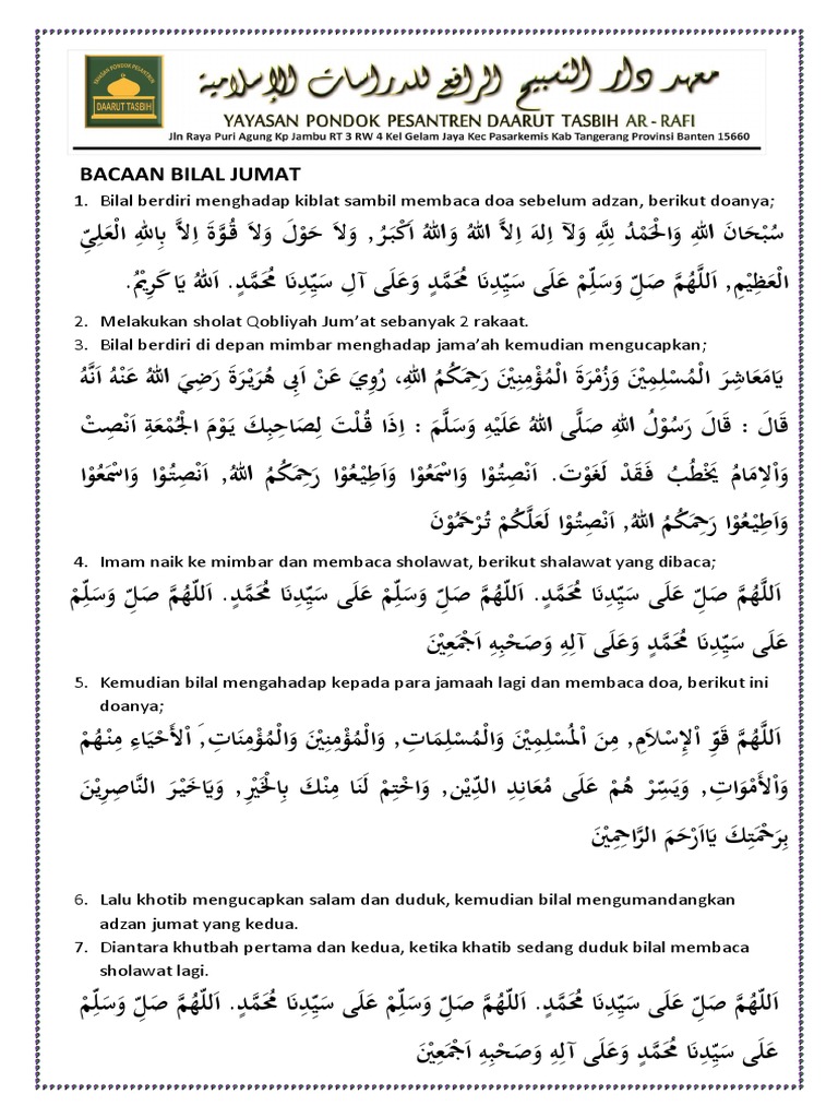 Doc Tata Cara Bilal Dalam Sholat Jum At Dan Bacaan Bacannya Achmad Fajar Academia Edu