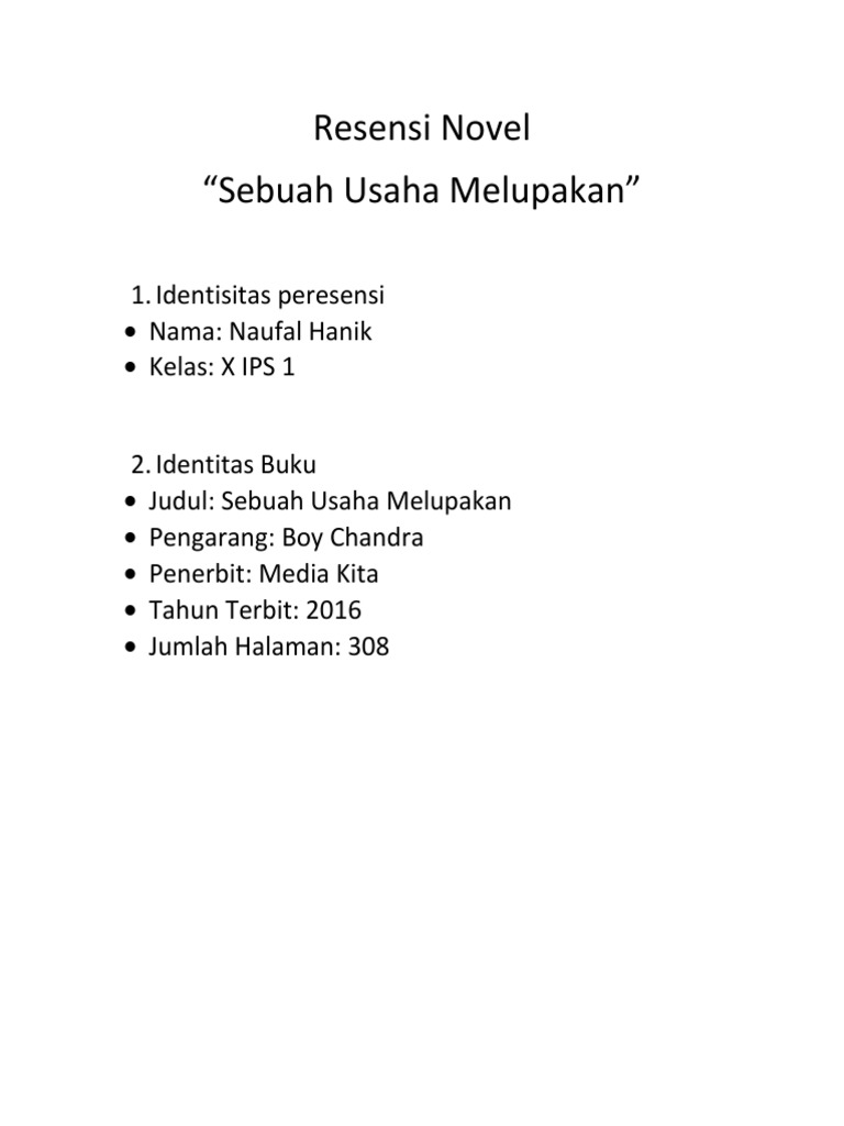 Resensi novel sebuah usaha melupakan karya. Untuk urusan alurnya aku suka karena proses ceritanya terlihat jelas mulai dari si penulis yang jatuh cinta menemui konflik patah hati hingga jatuh cinta kembali. 0 Full PDFs related to this paper.